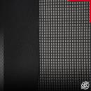 - Housses en maille tissée noire et bande centrale en damier gris sur fond noir